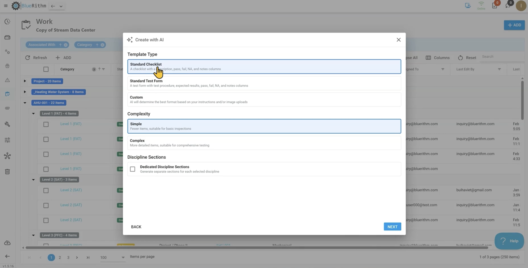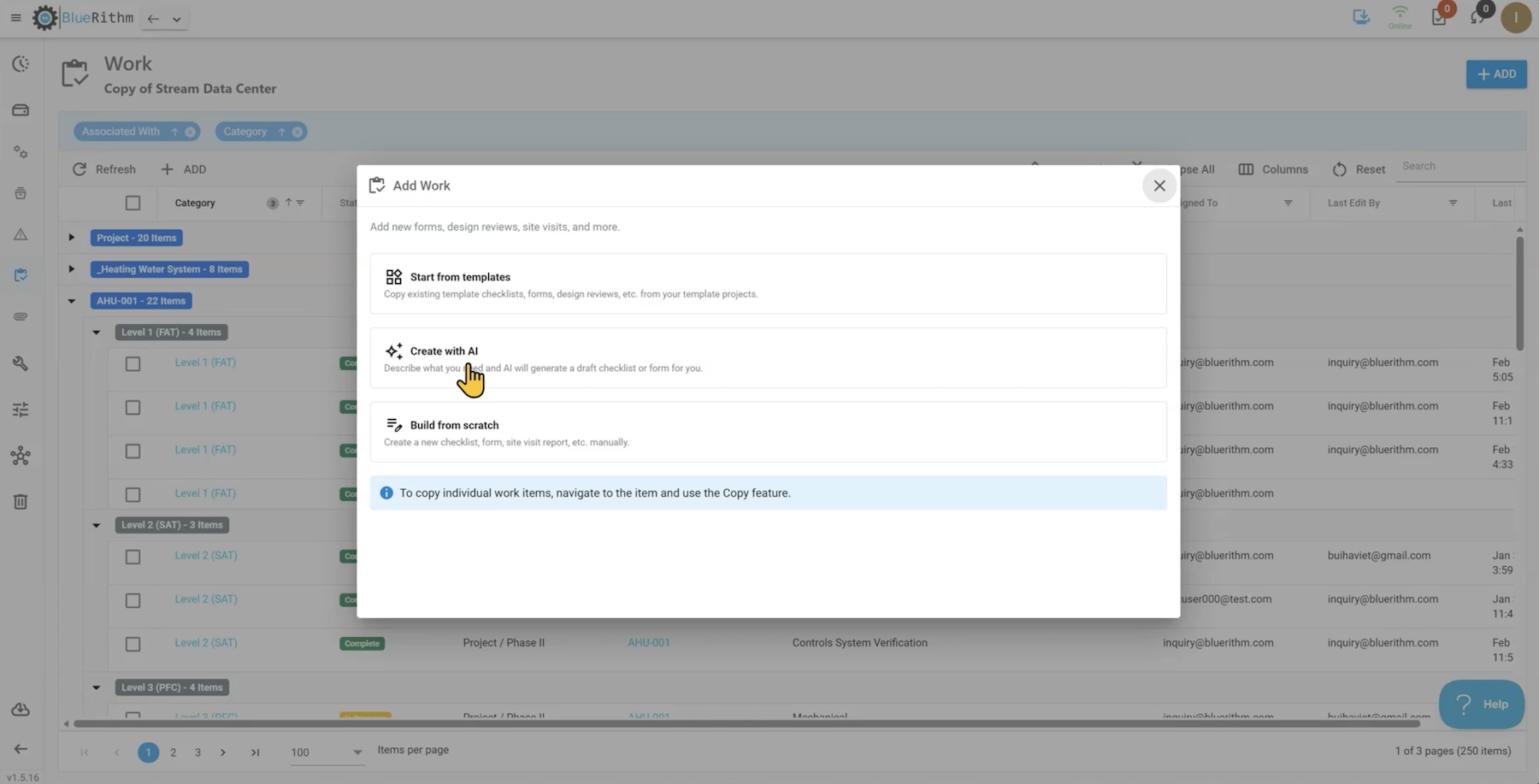 Creating commissioning forms and test procedures should not feel like starting from scratch every time. With Bluerithm’s updated AI form building tool, teams can now generate smarter, more structured checklists and test forms in less time, while still keeping control over the final result.