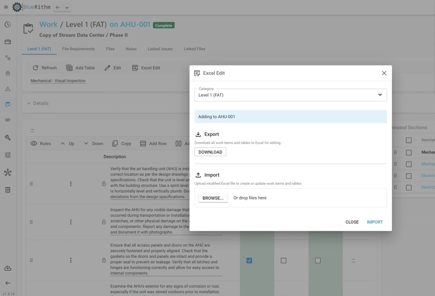 Instead of opening and editing sections one by one, teams can now review and update form content in Excel, then import those changes back into Bluerithm.