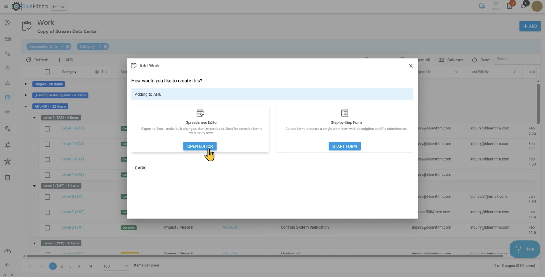In addition to the AI workflow, Bluerithm now includes a new Excel-based editing tool for existing forms.